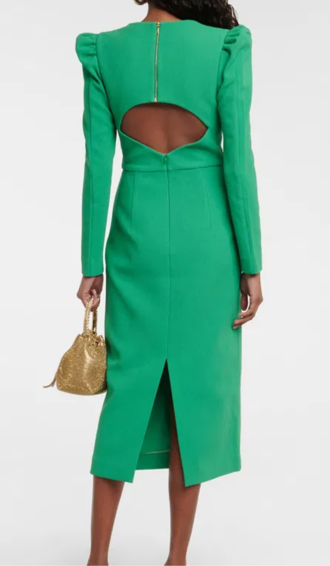 Description: For a dress that's equal parts elegant and daring, try on the Katie midi dress from Rebecca Vallance. The front and back cutouts on the fitted bodice gives this pencil skirt silhouette a contemporary twist.